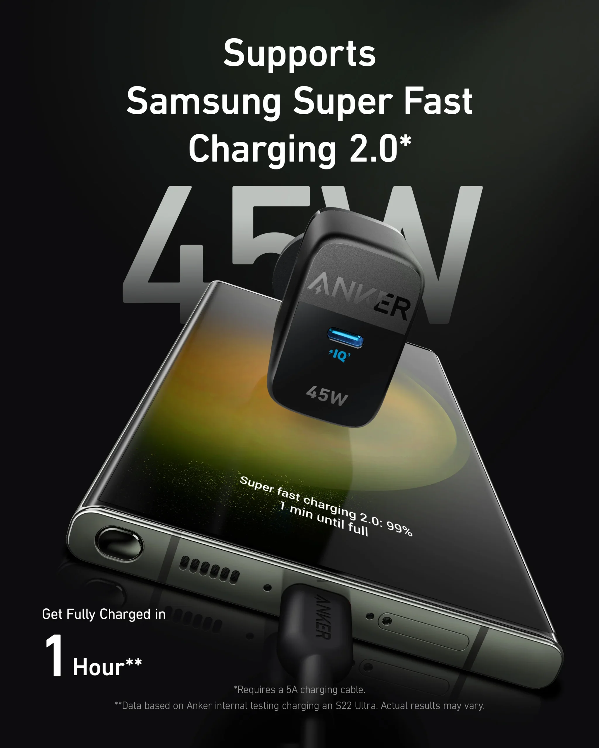 Ultra High Speed: Supports a maximum 45W Super Fast Charging 2.0 for Samsung, so you can fully charge your Galaxy S23 Ultra in under an hour. Note: Super Fast Charging 2.0 requires a 5A charging cable (not included).