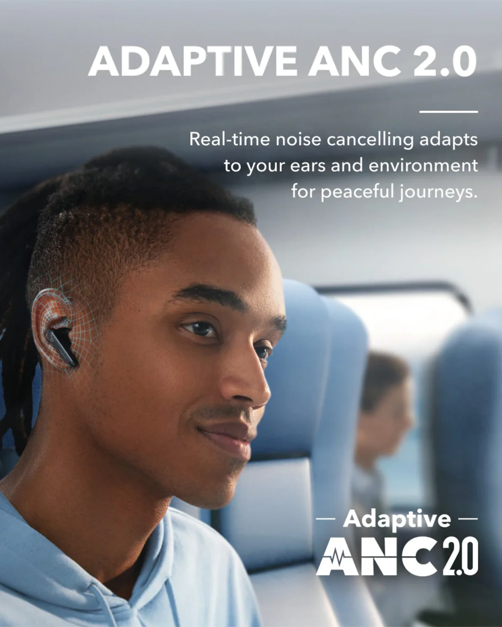 Adaptive ANC 2.0 adapts to ears and environment in real-time.