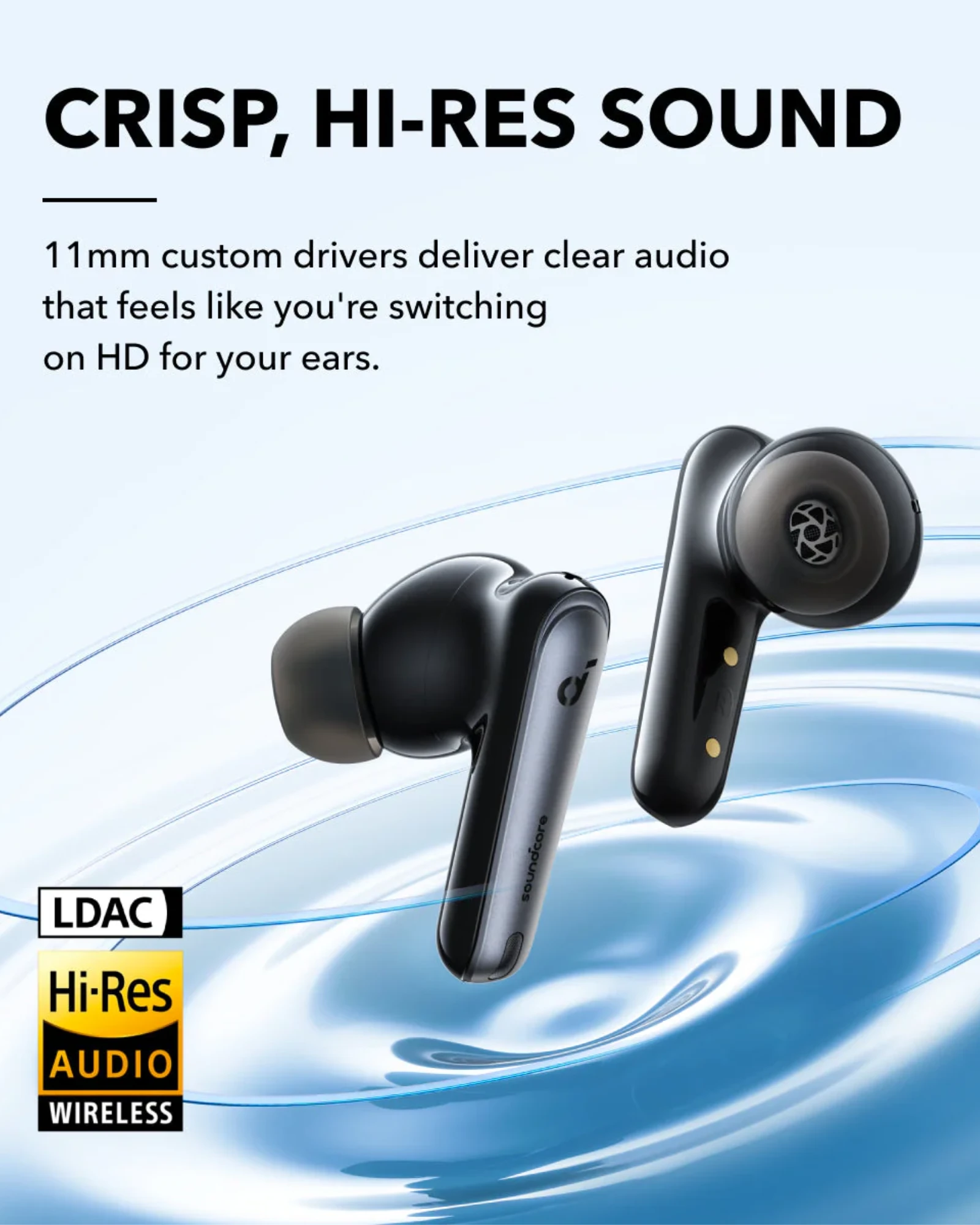 11mm drivers, Hi-Res Wireless and LDAC technology for crisp sound.