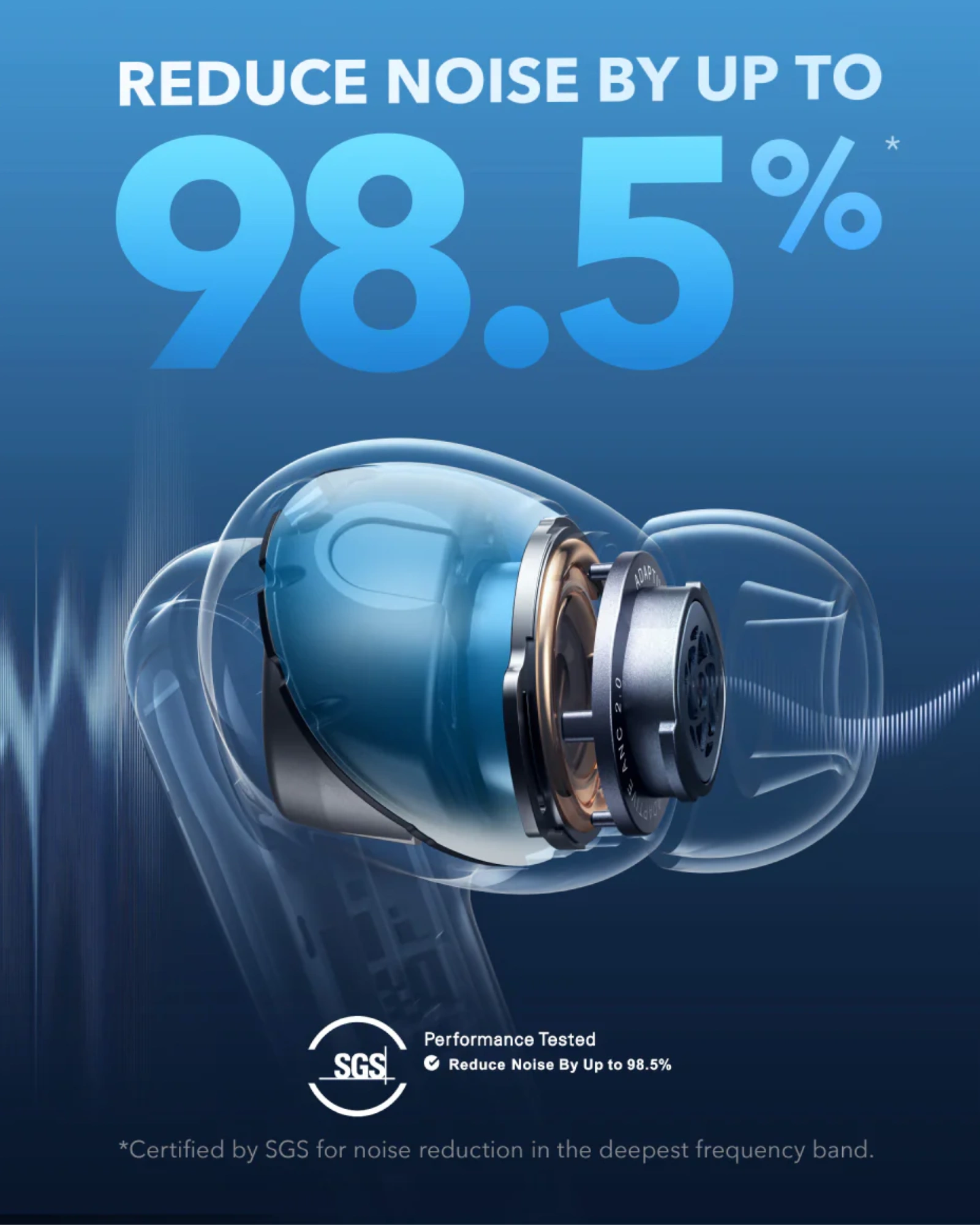 Reduce noise by up to 98.5% with our advanced noise cancelling system.