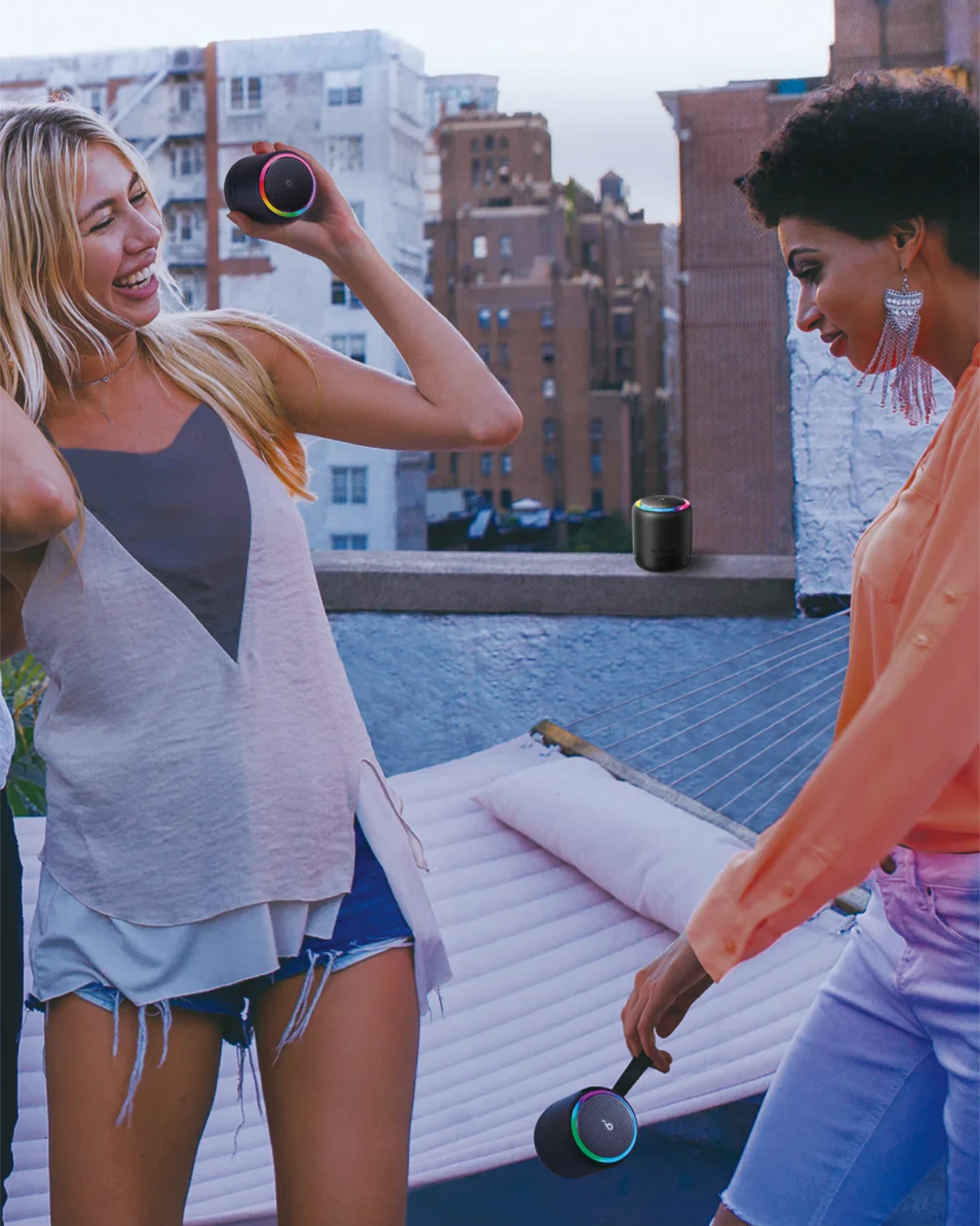 Super-portable Bluetooth speaker delivers powerful sound and robust bass.