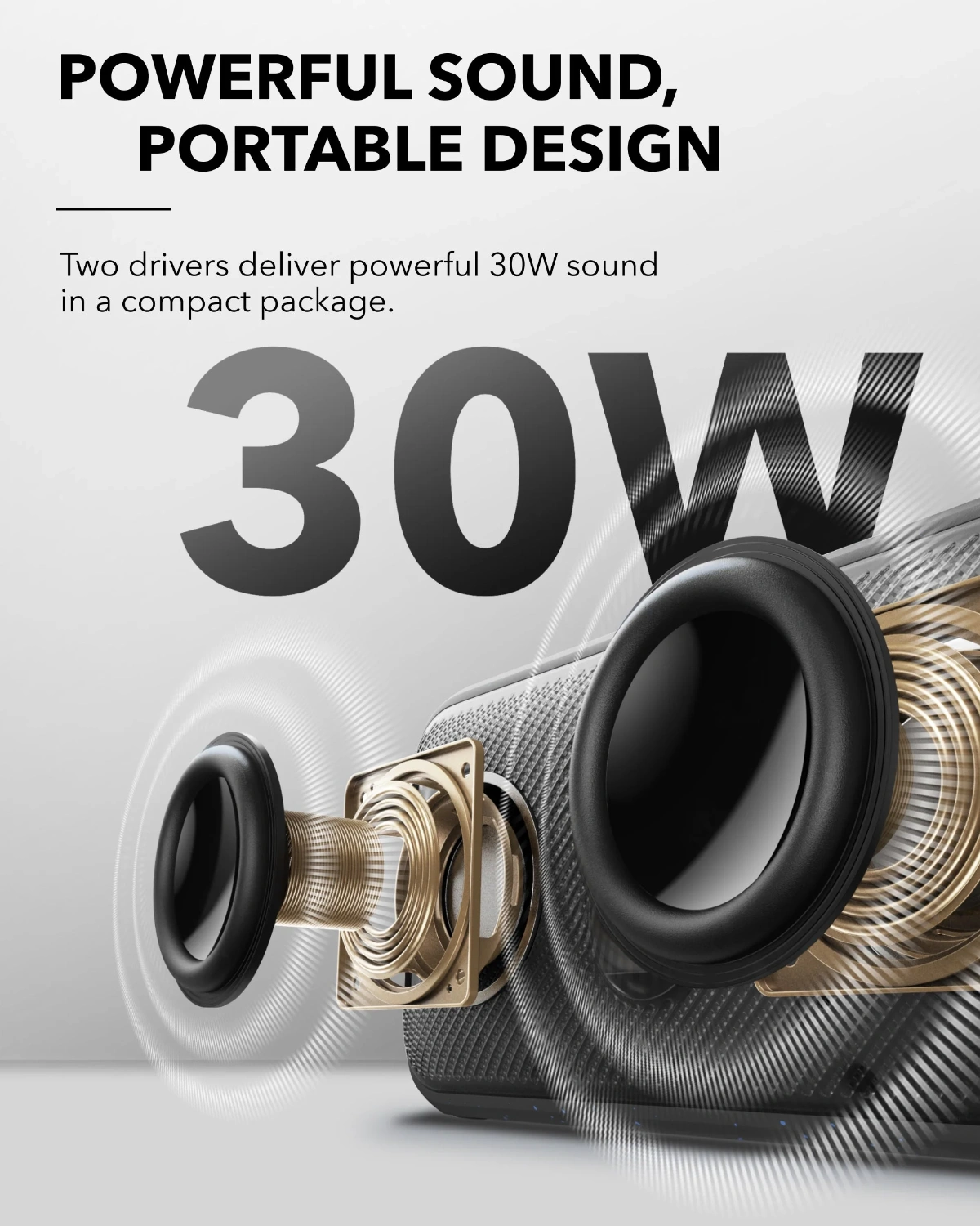 Powerful Sound, Portable Design: With powerful 30W stereo sound in the palm of your hand, you don’t have to sacrifice sound quality when you’re on the go.